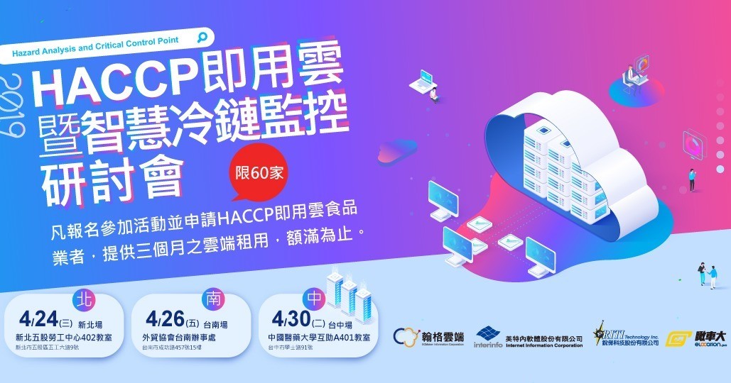 【好消息】凡報名參加活動並申請HACCP即用雲食品業者,將提供三個月之雲端租用!額滿為止~